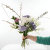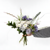 An airy, garden-style bouquet of soft whites, periwinkle and purples (item may vary based on availability.)