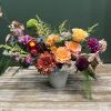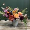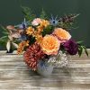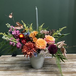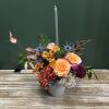 A serene mix of fall blooms and natural textures that bring elegance to the table. Available with or without a candle, perfect for fall gatherings and holiday celebrations. (flowers/colors/vessel may vary depending upon availability)