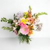 A cheerful mix of bright yellows and pinks with warm-toned orange blooms with fresh greenery adds a bright and welcoming touch to any space. (may vary slightly based on availability)